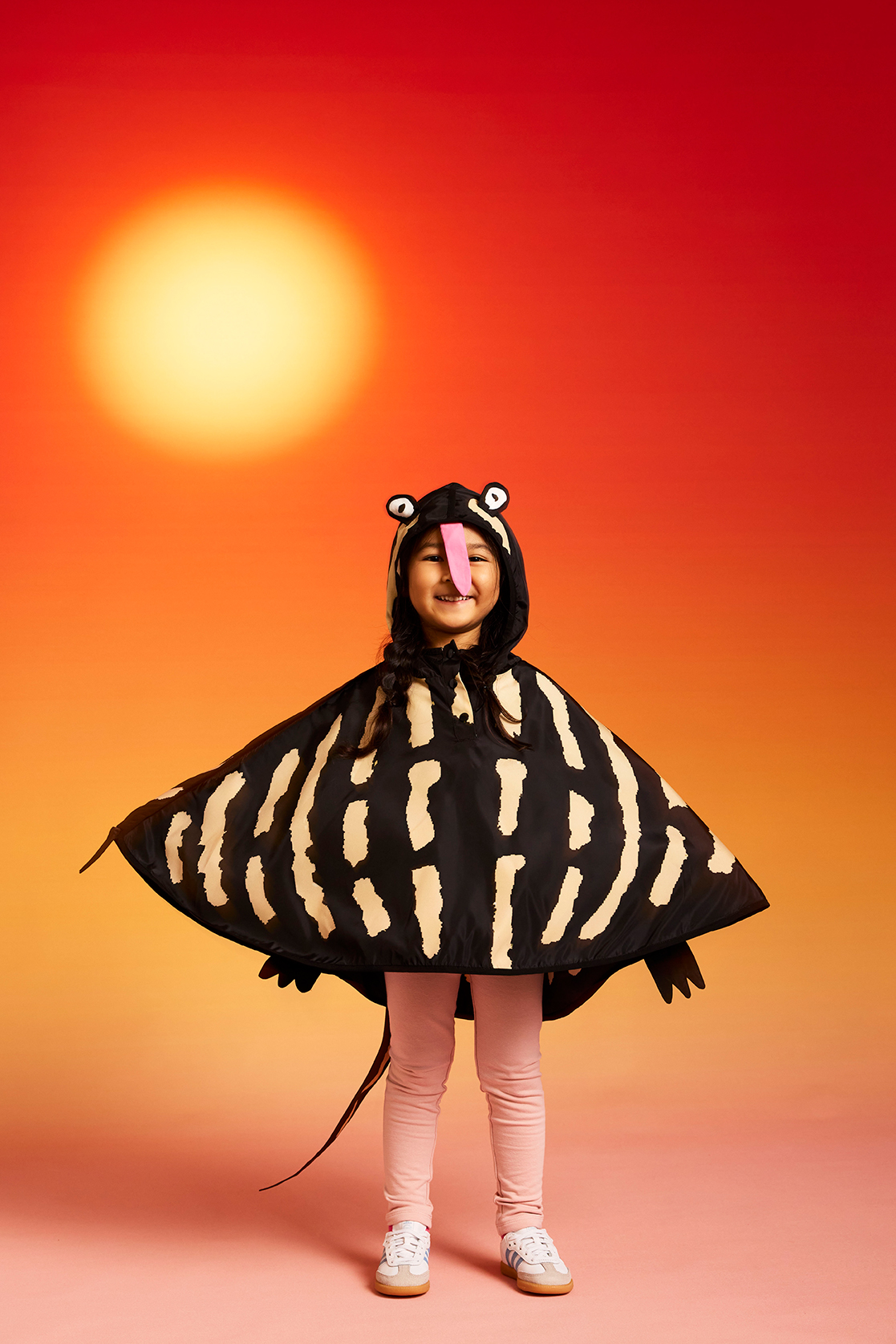 THE SUNSHELL draws from two masters of sun survival—the Fire Salamander’s mythical fireproof powers and the Desert Tortoise’s legendary water-holding abilities. Each cape transforms their instinctive heat wisdom into wearable imagination.